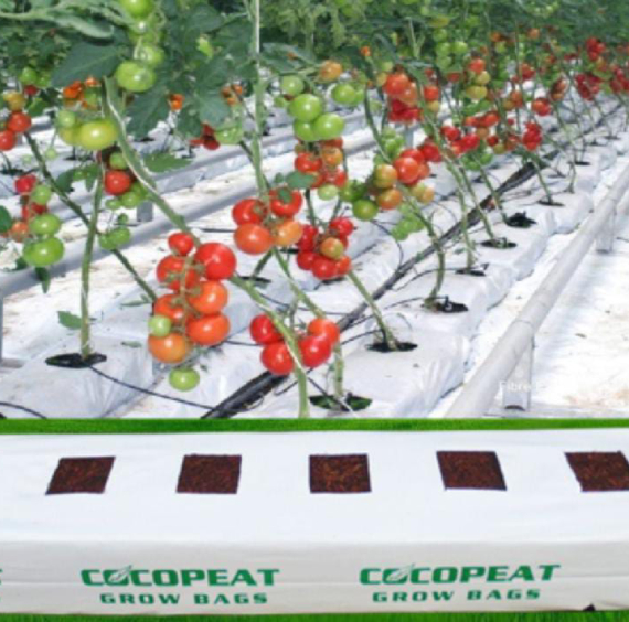 Coconut substrate in slabs; our speciality! Cocopeat Grow bags or Coir Grow bags are 100% natural, coco peat and coco chips based substrates packed in high density black and white UV stabilized poly bags for use in greenhouses. Our Product has been Tailored for each crop and their growing environment. The raw materials used for our grow bags are strictly quality controlled, and are guaranteed to have a homogeneous composition.
